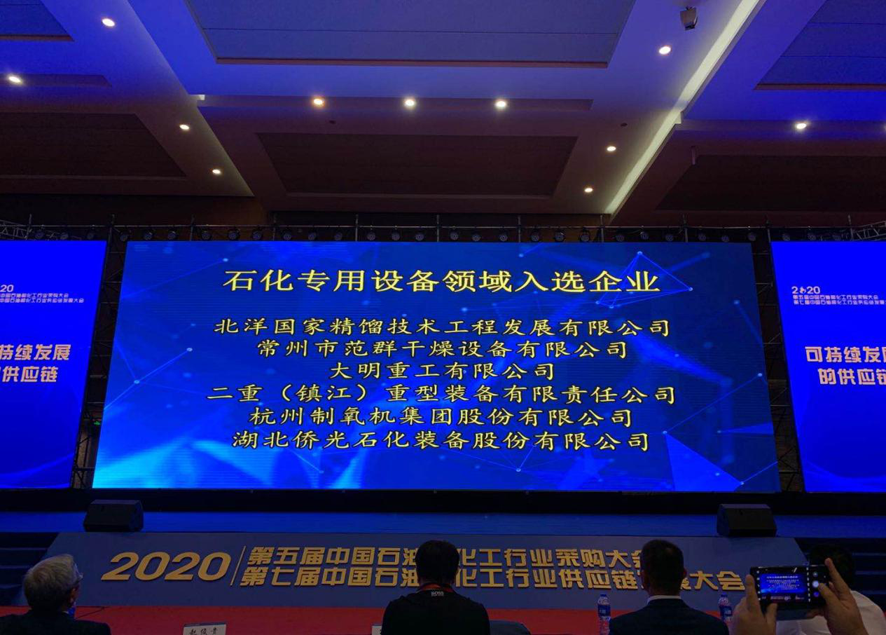 據(jù)悉,本次大會以“可持續(xù)發(fā)展的供應(yīng)鏈”為主題,共持續(xù)3天,參會代表千余人,來自跨國公司、工程公司、典型石化企業(yè)、優(yōu)質(zhì)供應(yīng)商的代表及專家深入分析了中國石化行業(yè)供應(yīng)鏈的現(xiàn)狀和問題,提出了可持續(xù)發(fā)展的方法和路徑,強調(diào)通過供采雙方的協(xié)同發(fā)展實現(xiàn)合作共贏。會上還發(fā)布了“2020中國石化行業(yè)百佳供應(yīng)商”榜單。常州范群作為國內(nèi)干燥設(shè)備行業(yè)的供應(yīng)商,斬獲2020年石化機械類“中國石化行業(yè)百佳供應(yīng)商”的殊榮。