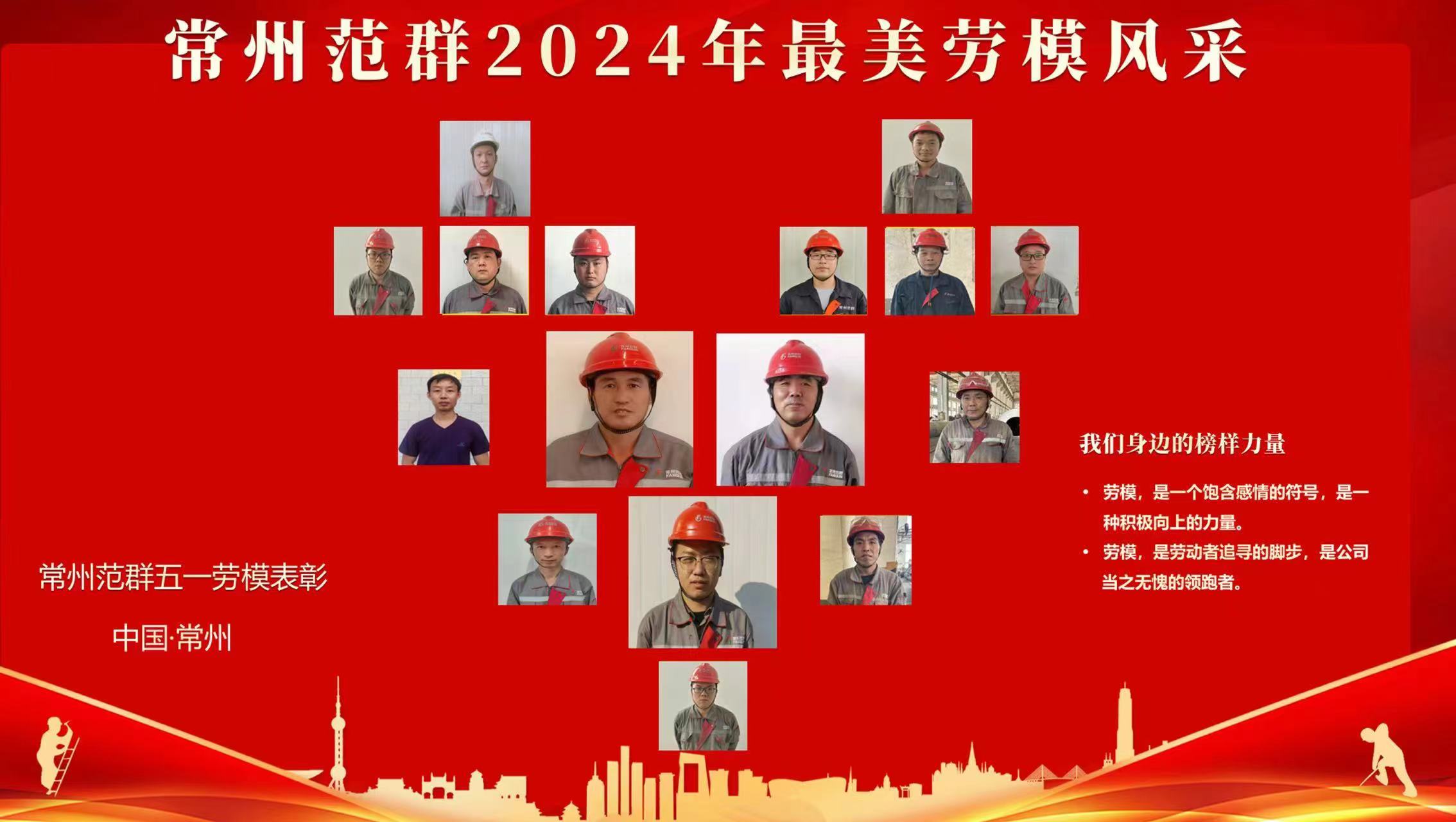 榜樣的精神力量是無窮的,常州范群希望通過勞模表彰活動,持續樹立先進典型,營造干事創業的良好環境,鼓舞全體職工以身邊先進勞模為榜樣,在崗位一線建功立業、實現自我,為常州范群高質量發展貢獻更多智慧和力量!