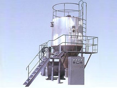 1.2噴霧干燥機日常操作 (1)首先開啟離心風機,然后開啟電加熱,并檢查有否漏氣,如正常即可進行筒身預熱,因熱風預熱決定著干燥設備的蒸發能力,在不影響被干燥物料的質量的前提下,應盡可能提高進風溫度;(2)預熱時,噴霧干燥機干燥室底部和旋風分離器下料口處閥門必須關好,以免冷風進入干燥室,降低預熱效率;(3)當干燥室進口溫度達到目180℃~220℃時,開啟離心噴頭,當噴頭達到最高轉速時,開啟進料泵,加入料液,進料量應由小到大,否則將產生粘壁現象,直到調節到適當量。料液的濃度應根據物料干燥的性質溫度來配制,以保證干燥后成品有良好的流動性;(4)干燥成品的溫度和濕度,取決于排風溫度,在運行過程中,保證排風溫度為一個常數是極其重要的,這取決于進料量的大小,進料量調節穩定,出口溫度是不改變的。若料液的含固量和流量發生變化時出口溫度也會出現變動;(5)產品溫度太低,可減少加料量,以提高出口溫度。產品的溫度太高,則反之。對于產品溫度較低的熱敏性物料可增加料量,以降低排風溫度,但產品的濕度將相應提高;(6)干燥后的成品被收集,在塔體下部和旋風分離器下部的授粉器內,在授粉器未經充滿前就應調換,在調換授粉器時,必須先將上面的蝶閥關閉方可進行;(7)若干燥的成品具有吸濕性,旋風分離器及其管道,授粉器的部位應用絕熱材料包扎,這樣可以避免干燥成品的吸潮吸濕。此外,對于熱敏性、軟化點低的物料,排風溫度過高時,物料產生軟化,需增加冷卻風量。