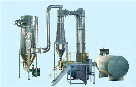 顆粒中的水分為干燥最終水分,通常不應低于貯存時的平衡水分。旋轉閃蒸干燥機由于干燥后物料顆粒很小,在干燥機內停留的時間極短,通常為1~3s。因此,顆粒的干燥處于等速干燥階段,其表面的溫度就是干燥介質的濕球溫度。采用旋轉閃蒸干燥機,物料的粒度均勻,有利于保證產品質量。