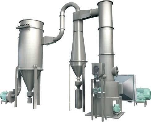 1、旋轉閃蒸干燥機采用高速熱氣流切線方向進入筒體,由于氣流在筒內的螺旋運動,降低顆粒周圍的介質溫度,同時增加了介質流速和溫度,這就大大地提高了外擴散的速度。