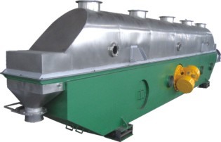 物料自進料進口進入機內(nèi),在振動力作用下,物料沿水平面流化床拋擲,向前連續(xù)運動,熱風向上穿過流化床同濕物料換熱后,濕空氣經(jīng)旋風分離器除塵后由排風1:3排出,干燥物料由排料進口排出。