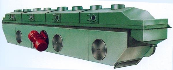 物料自進料口進入機內,在振動力作用下,物料沿水平方向拋擲向前連續運動,熱風向上穿過流化床同濕物料換熱后,濕空氣經旋風分離器除塵后由排風口排出;干燥物料由排料口排出。