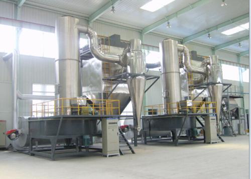根據鈦白粉的物料特性,在消化吸收國外先進設備和技術基礎上,自主研發的快速旋轉閃蒸干燥機在鈦白粉干燥中取得了成功應用。在離心力的作用下(頂部有分級裝置),達到一定干燥程度和細度的產品被吹出分級裝置,物料在此過程中得到快速干燥。